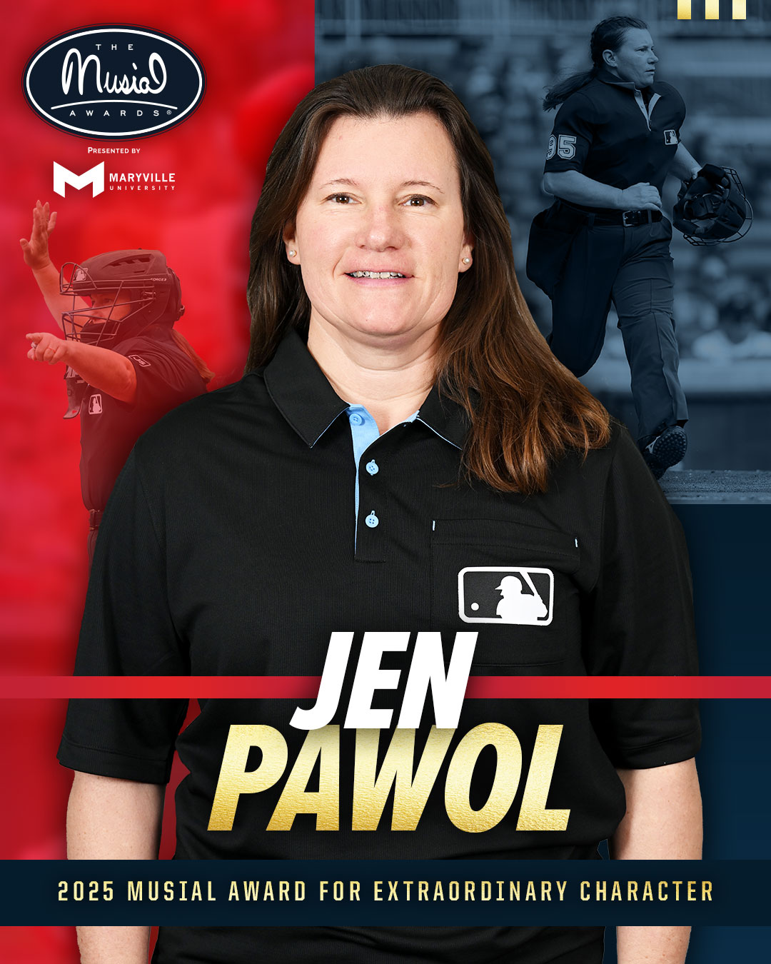 Among the players encouraging her along the way was fellow Extraordinary Character honoree Adam Wainwright. Jen was umpiring in Memphis in 2023, when Adam was on a rehab assignment.
