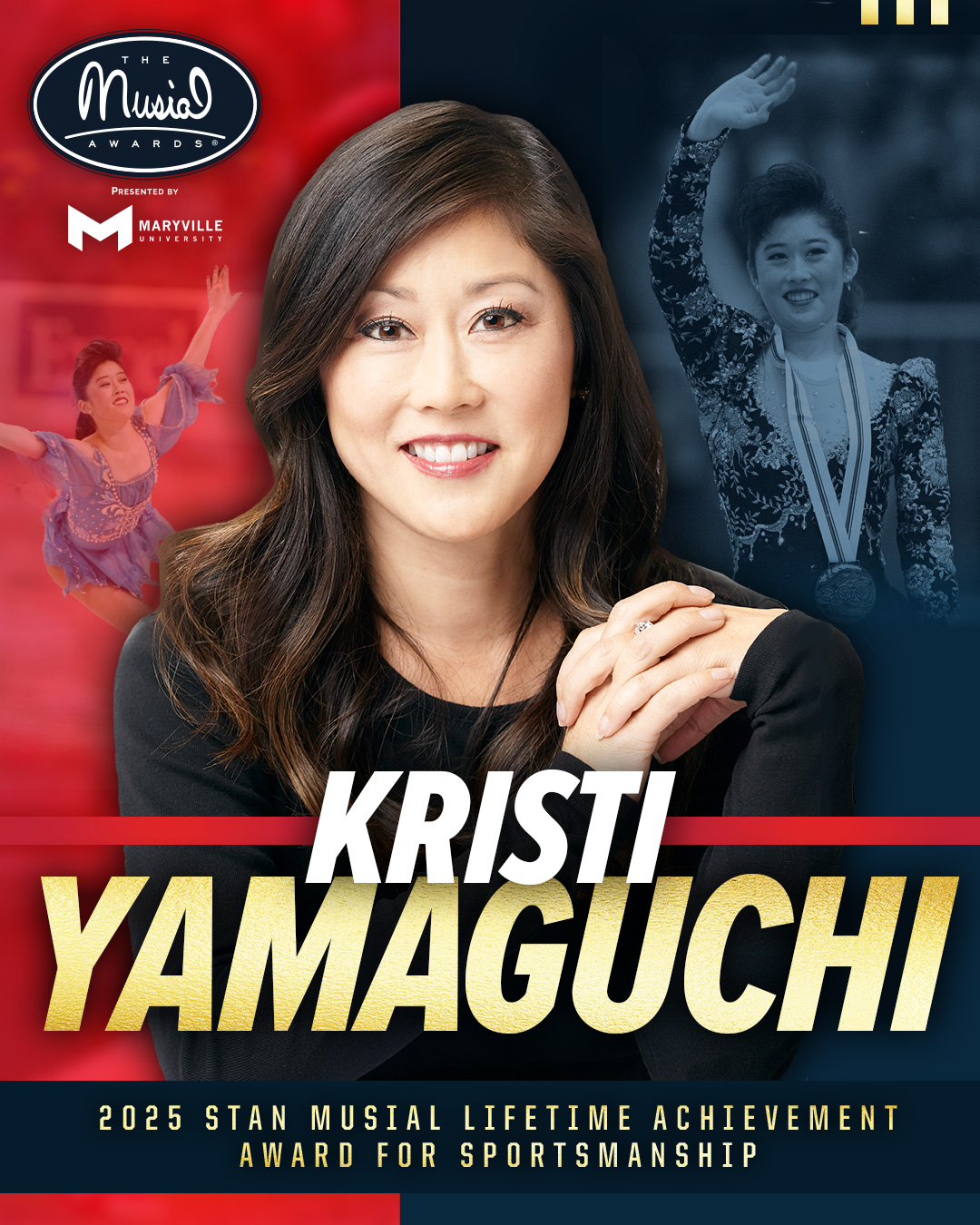 OLYMPIC CHAMPION WILL BE HONORED FOR HER EXCELLENCE, CLASS, AND PHILANTHROPIC IMPACT IN NATIONALLY TELEVISED MUSIAL AWARDS NOVEMBER 22 AT STIFEL THEATRE IN ST. LOUISST. LOUIS – October 6, 2025 – As graceful and talented as anyone on the ice, Kristi Yamaguchi exceeded her gold medal accomplishments in figure skating with a dynamic philanthropy and enormous positive impact on young people following her athletic career. Her ever-present ebullience, determination to reach the pinnacle of her craft, and penchant to uplift others make Yamaguchi a most deserving recipient of the 2025 Stan Musial Lifetime Achievement Award for Sportsmanship.